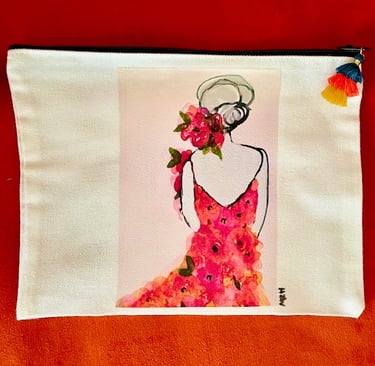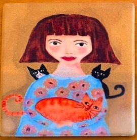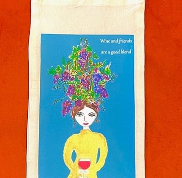 After retiring early, I shifted to art, blending my background in interior design, photography, and Art History. I first explored abstract acrylics and collage before moving on to whimsical portraits of women and cats with floral elements, painted in acrylic and watercolor. My artwork, featuring lively characters, is now available on items like make-up bags, wine totes, tumblers, luggage tags, and coasters—perfect for birthdays, hostess gifts, holidays, or thoughtful thank-yous.